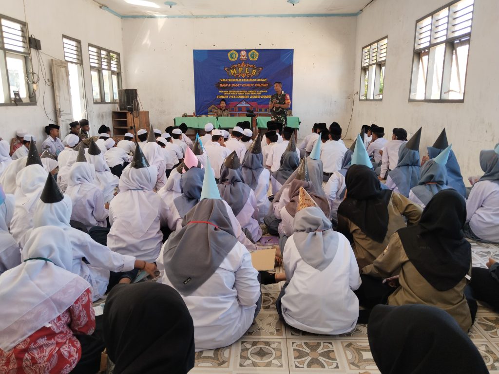 Dalam rangka Masa Pengenalan Lingkungan Sekolah (MPLS) bagi siswa baru, anggota TNI dari Koramil Krejengan, Serka Agus Sasmito dan Sertu Herun M., melaksanakan kegiatan penyuluhan Wawasan Kebangsaan (Wasbang) di SMP dan SMA Pondok Darut Tauhid, Kecamatan Krejengan, Kabupaten Probolinggo.