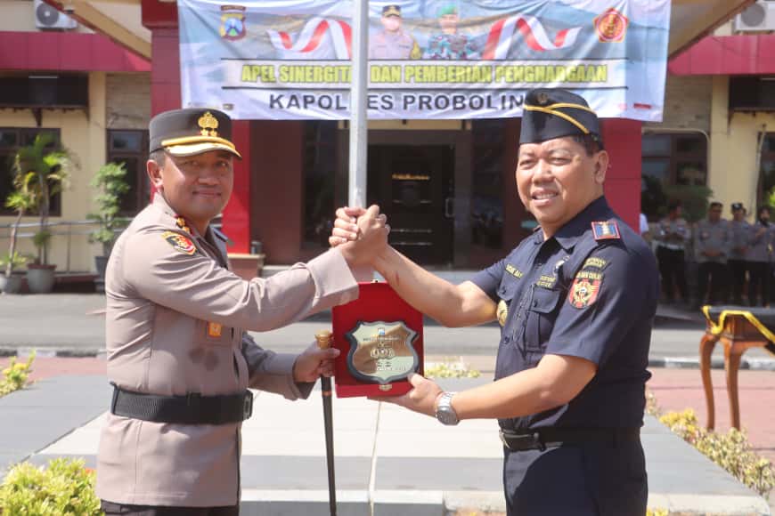 Kapolres Probolinggo Pimpin Apel Sinergitas TNI-Polri Dan Berikan Penghargaan kepada 55 Penerima