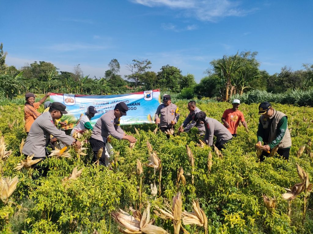 Polsek Bantaran Dorong Kemandirian Pangan Nasional Lewat Panen Jagung Bersama Kelompok Tani Tunas Harapan