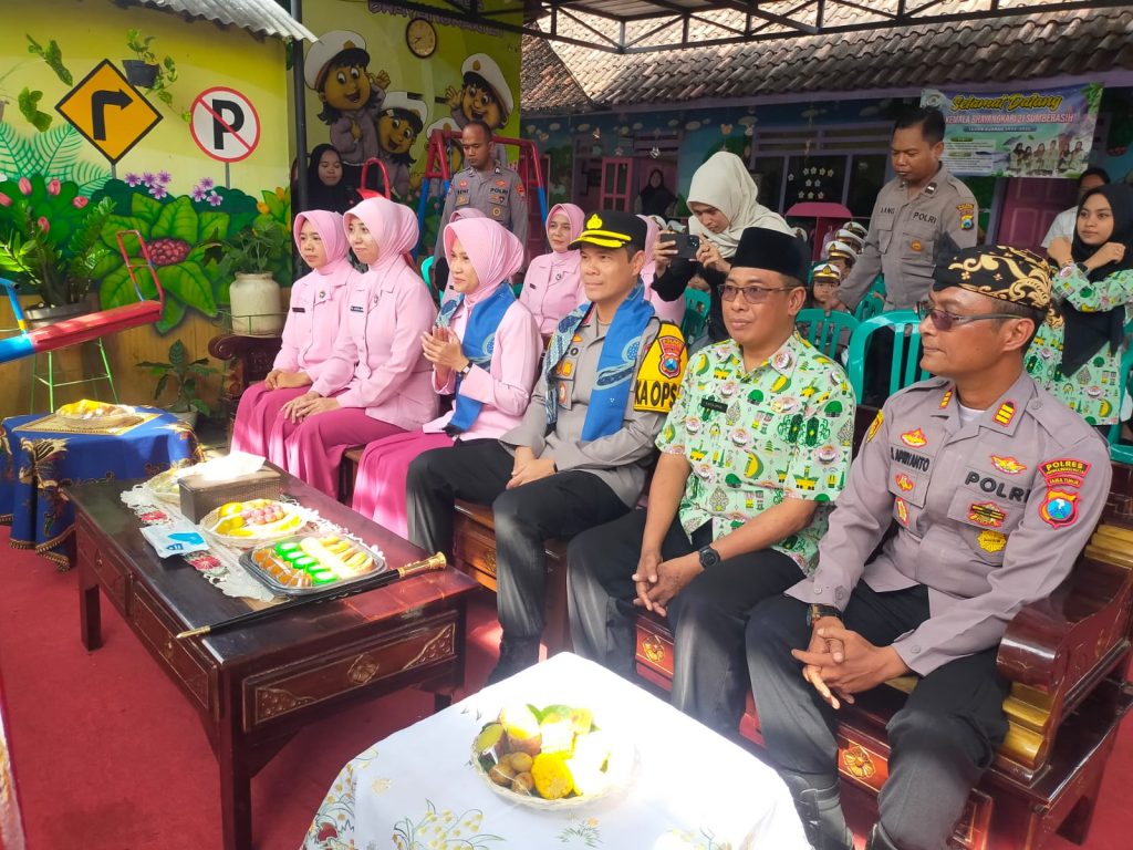 Kapolres Probolinggo Kota AKBP Rico Yumasri, S.I.K., M.I.K., bersama Ibu Ketua Cabang Bhayangkari Probolinggo Kota melakukan kunjungan rutin ke TK Kemala Bhayangkari 21 Sumberasih, Senin (27/10). Kunjungan tersebut disambut hangat oleh Kapolsek Sumberasih AKP Sugeng Apriyanto, S.H., beserta anggota Polsek Sumberasih dan para guru TK.