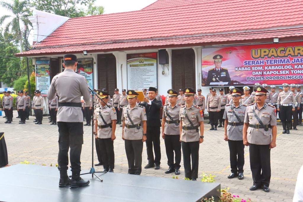 Adapun pejabat utama yang melaksanakan serah terima jabatan pada kesempatan tersebut antara lain Kabag SDM, Kabag Log, Kasat Lantas, dan Kapolsek Tongas. Jabatan Kabag SDM yang sebelumnya diemban oleh Kompol Agus Supariono kini secara resmi digantikan oleh Kompol Fauzi Iskak Dibyantoro, yang sebelumnya menjabat sebagai Kabag Log Polres Probolinggo Kota. Sementara itu, posisi Kabag Log yang ditinggalkan oleh Kompol Fauzi kini diisi oleh Kompol Suharta, S.H., M.H.