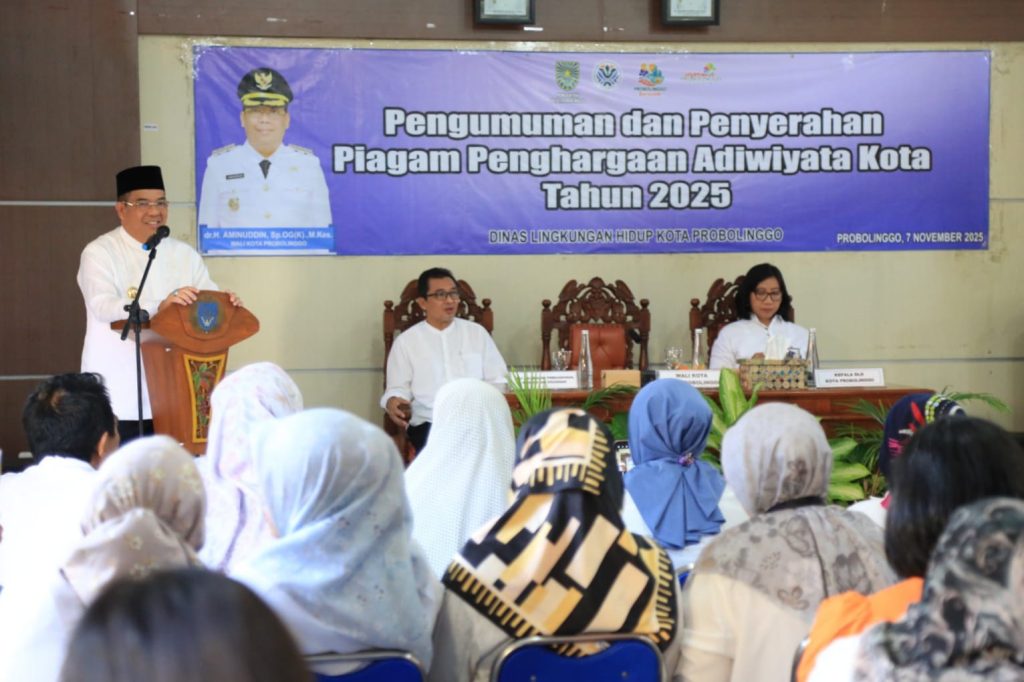 Upaya menjaga kelestarian lingkungan hidup terus digalakkan oleh Pemerintah Kota Probolinggo melalui berbagai program edukatif. Salah satunya diwujudkan lewat pemberian Penghargaan Adiwiyata Kota Probolinggo Tahun 2025, yang diselenggarakan oleh Dinas Lingkungan Hidup (DLH) di Aula Bestari, Jalan Anggrek Lingkar Utara, Jumat (7/11). Acara ini menjadi ajang apresiasi bagi sekolah-sekolah yang telah menunjukkan komitmen tinggi dalam membangun budaya peduli dan berwawasan lingkungan di lingkungan pendidikan.