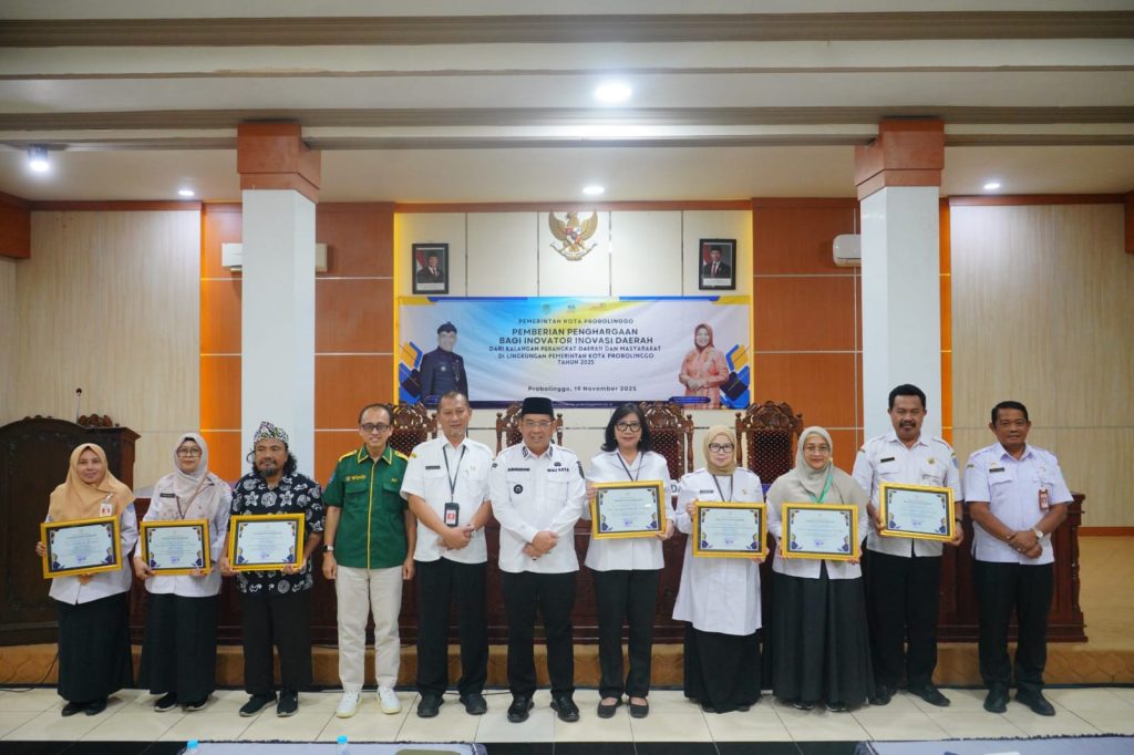 Kantor Wali Kota Probolinggo dipenuhi atmosfer apresiasi dan semangat pembaruan. Pemerintah Kota Probolinggo menggelar Pemberian Penghargaan Inovator Inovasi Daerah bagi perangkat daerah, satuan pendidikan, dan masyarakat yang telah menunjukkan kreativitas serta terobosan baru dalam meningkatkan kualitas layanan publik. Acara tersebut dihadiri langsung oleh Wali Kota Probolinggo, dr. Aminuddin. Rabu (19/11/2025)