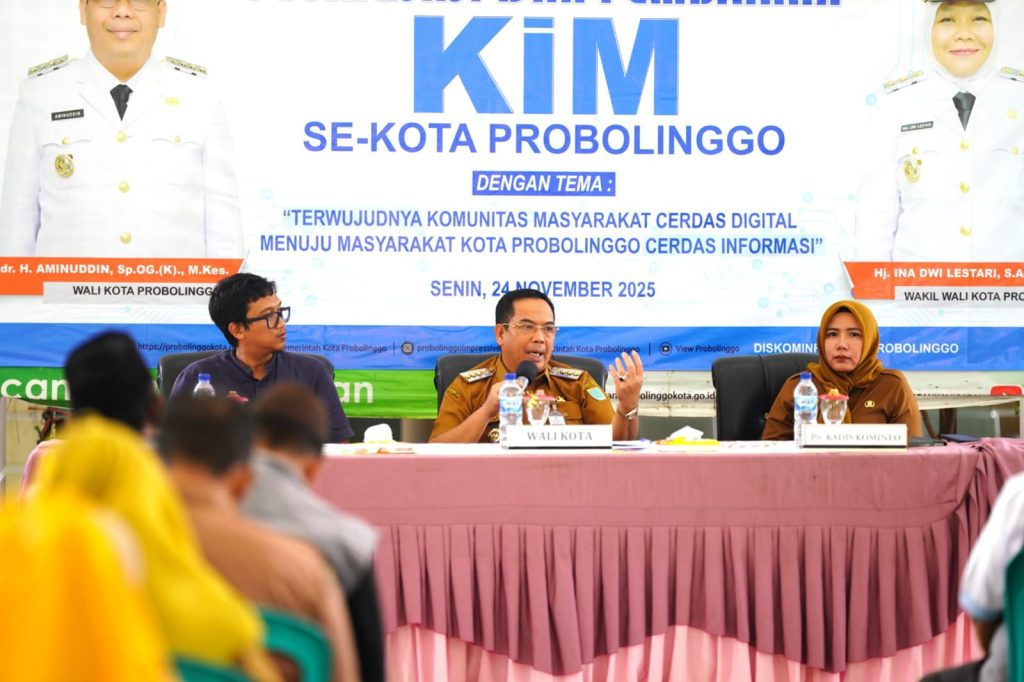 Meskipun cuaca sempat diguyur hujan pada Senin (24/11) siang, semangat puluhan anggota Komunitas Informasi Masyarakat (KIM) dari seluruh kelurahan di Kota Probolinggo tidak surut. Mereka tetap hadir memadati Pendopo Kecamatan Kanigaran untuk mengikuti kegiatan Sosialisasi dan Pembinaan KIM se-Kota Probolinggo tahun 2025. Kegiatan yang dibuka oleh Wali Kota Probolinggo, Dokter Aminuddin, tahun ini mengangkat tema “Terwujudnya Komunitas Masyarakat Cerdas Digital Menuju Masyarakat Kota Probolinggo Cerdas Informasi”.