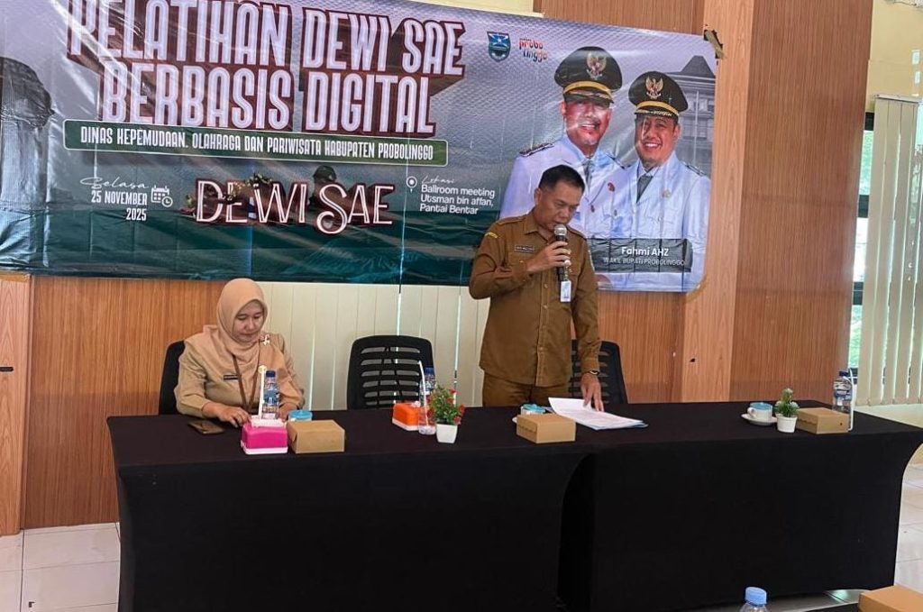 Upaya meningkatkan tata kelola dan memperluas jangkauan promosi digital destinasi wisata di Kabupaten Probolinggo kembali diperkuat melalui penyelenggaraan Pelatihan Desa Wisata Sejahtera, Amanah-Religius dan Eksis Berdaya Saing (DEWI SAE) Berbasis Digital. Kegiatan ini diselenggarakan oleh Dinas Kepemudaan, Olahraga dan Pariwisata (Disporapar) Kabupaten Probolinggo, bertempat di Hall Room Utsman Bin Affan The Bentar Beach, Desa Curahsawo, Kecamatan Gending, pada Selasa (25/11/2025).