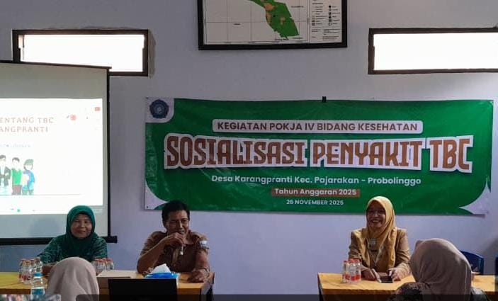 Tim Penggerak PKK Desa Karangpranti, Kecamatan Pajarakan, bekerja sama dengan Puskesmas Pajarakan menyelenggarakan sosialisasi penyakit Tuberkulosis (TBC) pada Selasa, 25 November 2025. Kegiatan yang berlangsung di Balai Desa Karangpranti ini diikuti oleh seluruh kader PKK, perangkat desa, serta perwakilan tenaga kesehatan dari Puskesmas Pajarakan. Sosialisasi ini menjadi bagian penting dari agenda Pokja IV PKK yang fokus pada peningkatan kesehatan keluarga melalui edukasi, pemberdayaan kader, dan penguatan kapasitas masyarakat dalam mengenali serta mencegah penyakit menular seperti TBC.