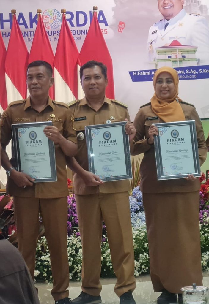 Acara penyerahan penghargaan tersebut dihadiri langsung oleh Bupati Probolinggo Gus dr. Mohammad Haris, jajaran Forum Koordinasi Pimpinan Daerah (Forkopimda) Kabupaten Probolinggo, serta seluruh pimpinan Organisasi Perangkat Daerah (OPD). dan Seluruh Camat Sekabupaten Probolinggo Kegiatan ini menjadi bagian dari agenda pemerintah daerah dalam mendorong penguatan integritas dan budaya anti korupsi di seluruh lini birokrasi.