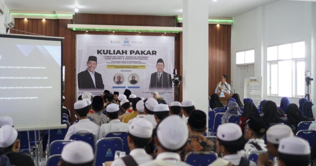 Upaya meningkatkan literasi dan kesadaran keamanan digital di kalangan generasi muda terus digencarkan. Salah satunya melalui kegiatan kuliah pakar bertema “Cyber Security: Aman di Internet dari Hacker dan Penipuan Digital” yang digelar di Universitas Hafshawaty Zainul Hasan (Unhasa) Genggong, Kecamatan Pajarakan, Kabupaten Probolinggo, Minggu (11/1/2026). Kegiatan ini dihadiri langsung oleh Kepala Dinas Komunikasi, Informatika, Statistik dan Persandian (Diskominfo) Kabupaten Probolinggo, Hudan Syarifudin.