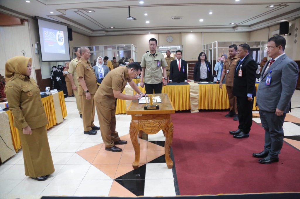 Kegiatan yang dimulai sejak pukul 10.00 WIB ini dirangkai dengan penandatanganan Pakta Integritas dan Pernyataan Kesanggupan Tugas, penyerahan dokumen pendirian Perseroda Bahari Tanjung Tembaga, serta penandatanganan RKAP Tahun 2026.