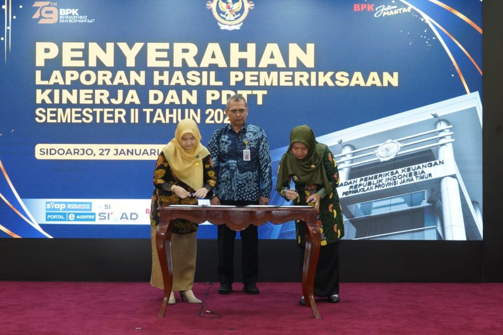 Upaya penguatan akuntabilitas pengelolaan keuangan dan program pemerintah daerah kembali ditegaskan Badan Pemeriksaan Keuangan (BPK) RI Perwakilan Provinsi Jawa Timur melalui penyerahan Laporan Hasil Pemeriksaan (LHP) Kinerja dan Pemeriksaan Dengan Tujuan Tertentu (PDTT) Semester II Tahun 2025. Penyerahan tersebut berlangsung Selasa (27/1) di Auditorium Kantor BPK RI Perwakilan Jawa Timur di Sidoarjo, dengan Kota Probolinggo menjadi salah satu daerah penerima LHP PDTT.