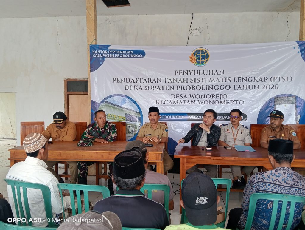 Pemerintah Desa Wonorejo Kecamatan Wonomerto Kabupaten Probolinggo menggelar kegiatan penyuluhan Program Pendaftaran Tanah Sistematis Lengkap (PTSL) Tahun 2026. Kegiatan ini bertujuan memberikan pemahaman kepada masyarakat terkait pentingnya sertifikasi tanah serta tata cara dan persyaratan dalam mengikuti program pemerintah tersebut. Selasa (10/02/2026).