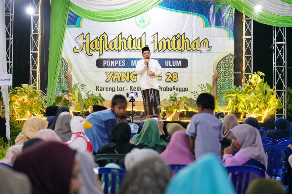 Suasana penuh khidmat dan kebanggaan mewarnai perayaan Haflatul Imtihan di Pondok Pesantren Miftahul Ulum, Kareng Lor, Kecamatan Kedopok, Minggu (8/2/2026) malam. Dalam momentum akhir tahun pendidikan tersebut, Wali Kota Probolinggo dr. Aminuddin turut hadir memberikan dukungan dan motivasi kepada para santri yang telah menempuh proses pembelajaran selama satu tahun penuh.