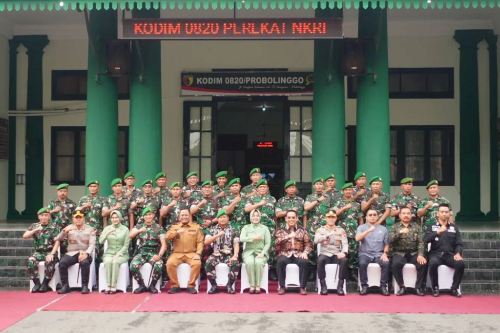 Kapolres Polres Probolinggo Kota AKBP Rico Yumasri bersama jajaran Forkopimda menghadiri kegiatan kunjungan kerja Komandan Korem 083/Baladhika Jaya (BDJ), Kolonel Inf. Kohir, ke Markas Komando Distrik Militer (Makodim) Kodim 0820/Probolinggo, Minggu (22/2) pagi. Pertemuan tersebut menjadi momentum penting untuk mempererat silaturahmi sekaligus memperkuat komunikasi dan sinergi antara unsur TNI, Polri, serta pemerintah daerah dalam menjaga stabilitas wilayah.