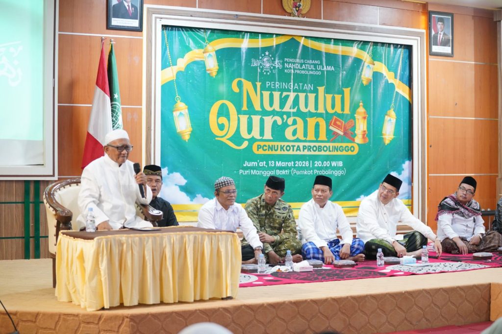 Suasana religius mewarnai peringatan Nuzulul Qur’an yang digelar Pengurus Cabang Nahdlatul Ulama (PCNU) Kota Probolinggo pada Jumat (13/3) malam di Puri Manggala Bhakti. Kegiatan tersebut dihadiri langsung oleh Wali Kota Probolinggo, dr. Aminuddin, bersama ratusan jemaah dari berbagai kalangan, mulai dari tokoh agama, pengurus NU hingga masyarakat umum.