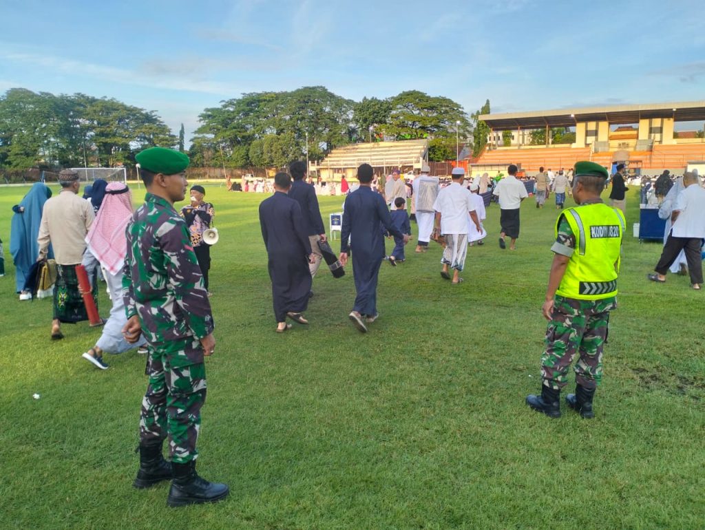 Kodim 0820/Probolinggo melalui Danpos Mayangan kembali hadir di tengah -tengah masyarakat dalam rangka melakukan pemantauan dan pengawalan pelaksanaan Sholat Idul Fitri 1447 H / 2026 Masehi oleh warga Muhammadiyah di Stadion Bayuangga, Kelurahan Sukabumi, Kecamatan Mayangan, Kota Probolinggo.