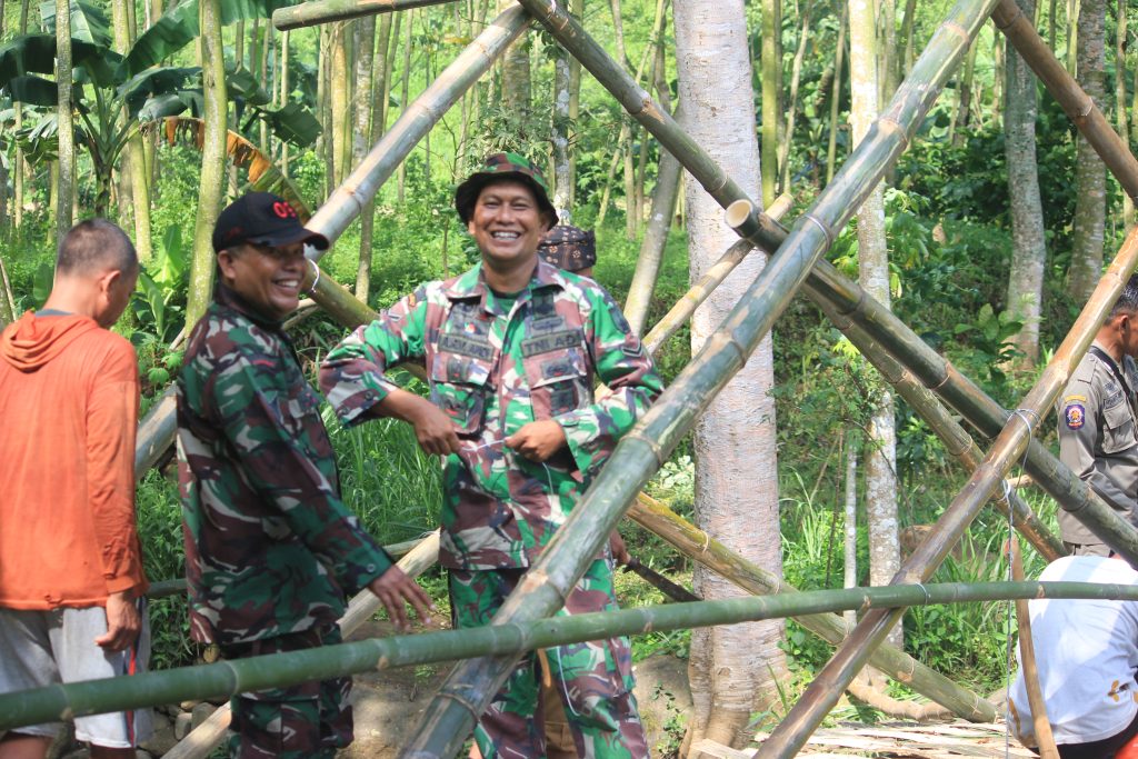 Koramil 0820-09/Lumbang Bersama Warga Bangun Jembatan Darurat Pasca Longsor Di Desa Negororejo
