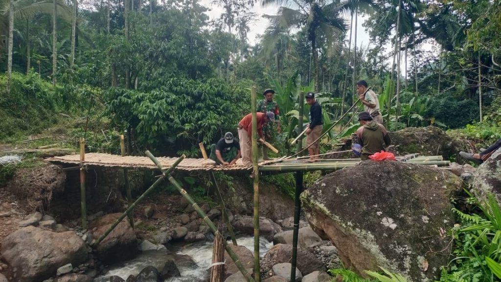 Ia menambahkan, pembangunan jembatan darurat tersebut dilakukan secara swadaya oleh warga bersama aparat TNI dengan memanfaatkan bahan dan alat seadanya.
