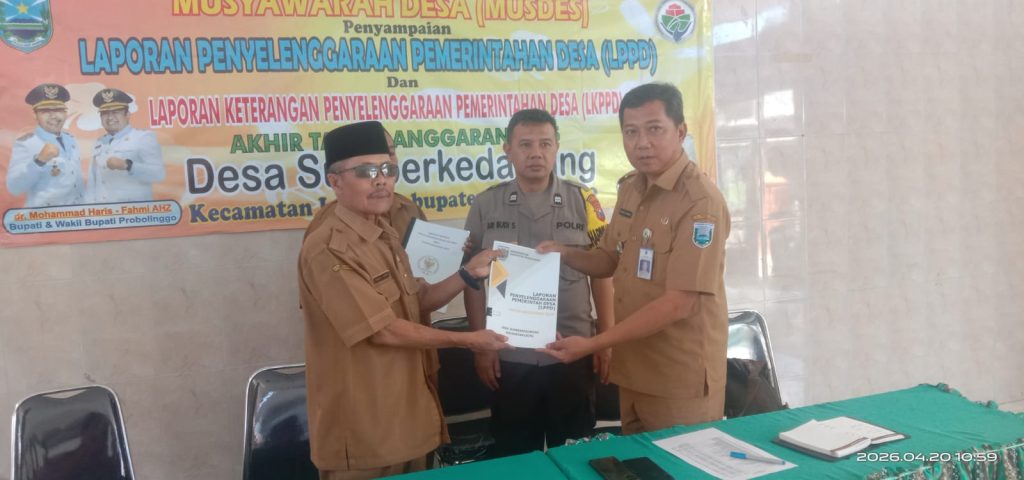 Pemerintah Desa Sumberkedawung, Kecamatan Leces, Kabupaten Probolinggo, menggelar Musyawarah Desa (Musdes) dengan agenda utama penyampaian Laporan Penyelenggaraan Pemerintahan Desa (LPPD) serta Laporan Keterangan Penyelenggaraan Pemerintahan Desa (LKPPD) akhir Tahun Anggaran 2025. Senin (20/04/2026).