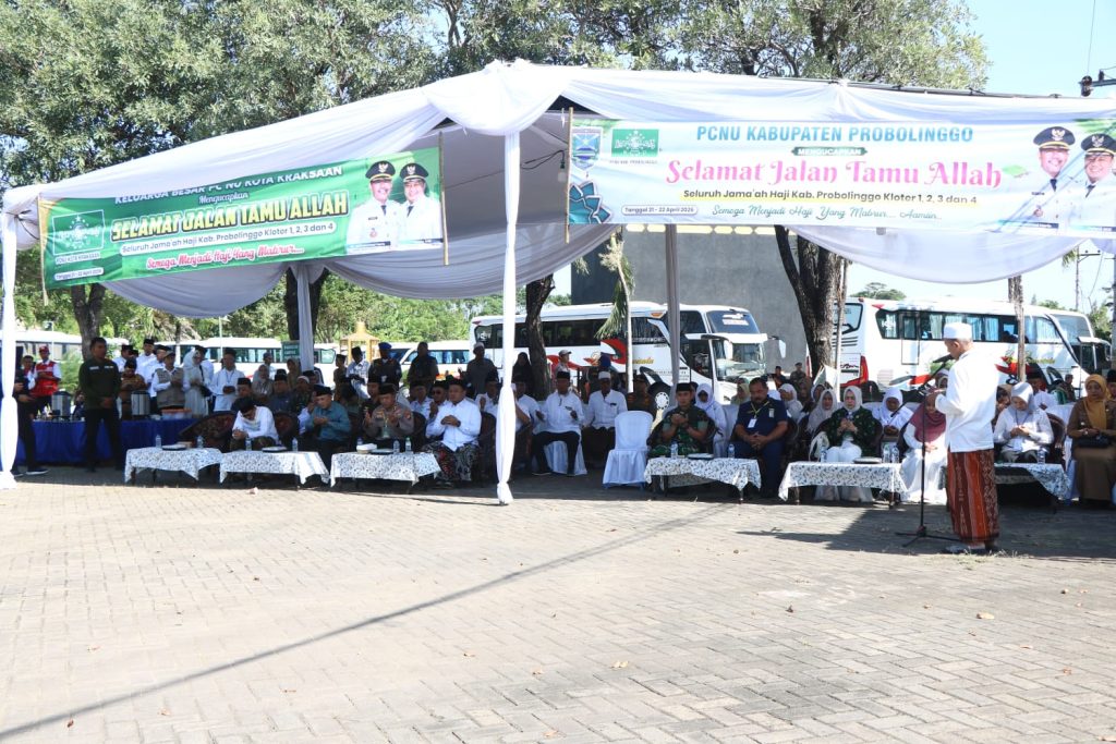 Sebanyak 752 calon jamaah haji asal Kabupaten Probolinggo yang tergabung dalam Kloter 1 dan Kloter 2 resmi diberangkatkan menuju Asrama Haji Sukolilo Embarkasi Surabaya dari kawasan wisata religius Miniatur Ka’bah Desa Curahsawo, Kecamatan Gending, Rabu (22/4).