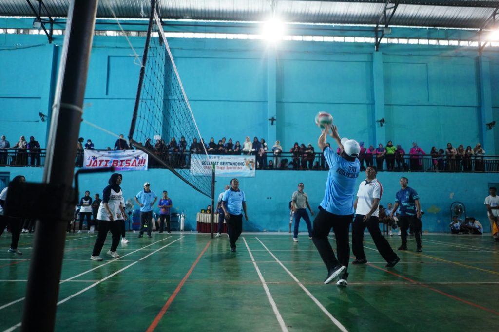 Suasana meriah mewarnai GOR A. Yani saat Turnamen Bola Voli Putri TP PKK Cup Antar Kelurahan se-Kota Probolinggo Tahun 2026 resmi dibuka oleh Wali Kota Probolinggo, Aminuddin, Rabu (22/4/2026). Sebanyak 29 tim dari berbagai kelurahan turut ambil bagian dalam ajang ini yang akan berlangsung selama enam hari dengan sistem gugur.