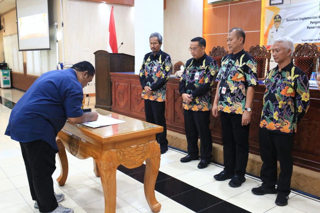 Kali ini, Pemkot menggelar sosialisasi implementasi sekaligus penandatanganan kontrak konsolidasi pengadaan kertas HVS Tahun Anggaran 2026–2027 pada Kamis (23/4) siang di ruang Puri Manggala Bhakti, kantor wali kota setempat.