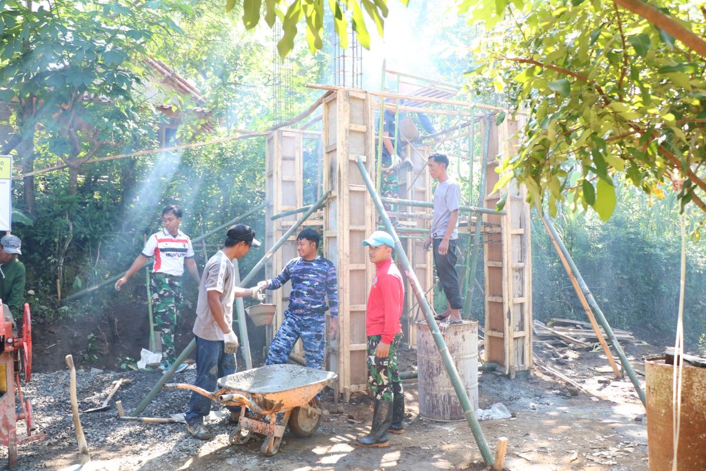 Prajurit TNI AU dari Lanud Abdulrachman Saleh turut bergabung dalam Satgas TMMD untuk membantu merampungkan pembangunan tandon air di Dusun Klagin RT 20 RW 07 Desa Brabe Kecamatan Maron Kabupaten Probolinggo.